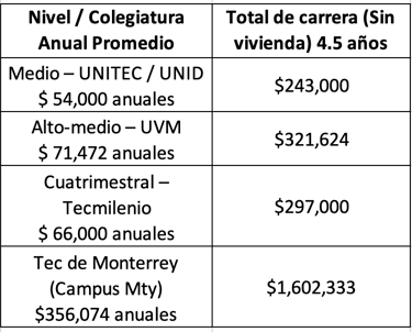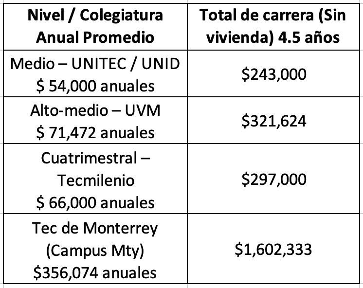 Date cuenta de cuanto podrías necesitar en la formación universitaria de tu hijo. (info tomada de la web utilizando IA)