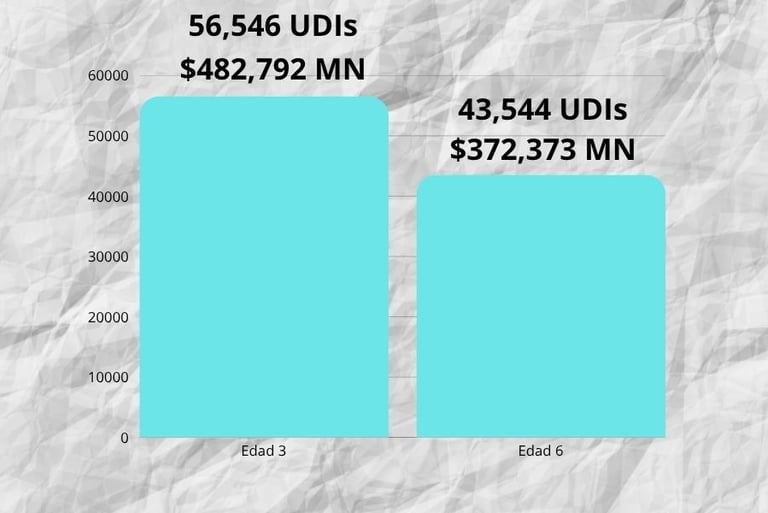 En el 2013 un padre ahorró 300 UDI´s por mes para cada uno de sus hijos de 3 y 6 años. Mira lo que recupero cuando cumplieron 18 años. Para este ejercicio se tomaron los valores de UDI desde 2010 a la fecha.